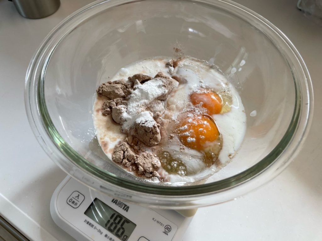 あとは賞味期限切れしてしているザバスのプロテインを使ってケーキを作ってみました。